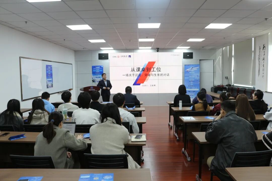 随后,王毅博带来了《从课桌到工位:一场关于沉淀、突破与生长的对话》主题分享,他以“过去・现在・未来”为时间轴,坦诚分享了自己从校园到职场的身份转变:过去,在yl88858cc永利官网打下的扎实数理基础、数学思维让他在金融岗位上精准破局;现在,在金融实践上不断突破,在岗位历练中实现能力与认知的双重提升;未来,鼓励同学们保持好奇心与求知欲,锤炼核心竞争力,在沉淀中蓄力,在挑战中成长。