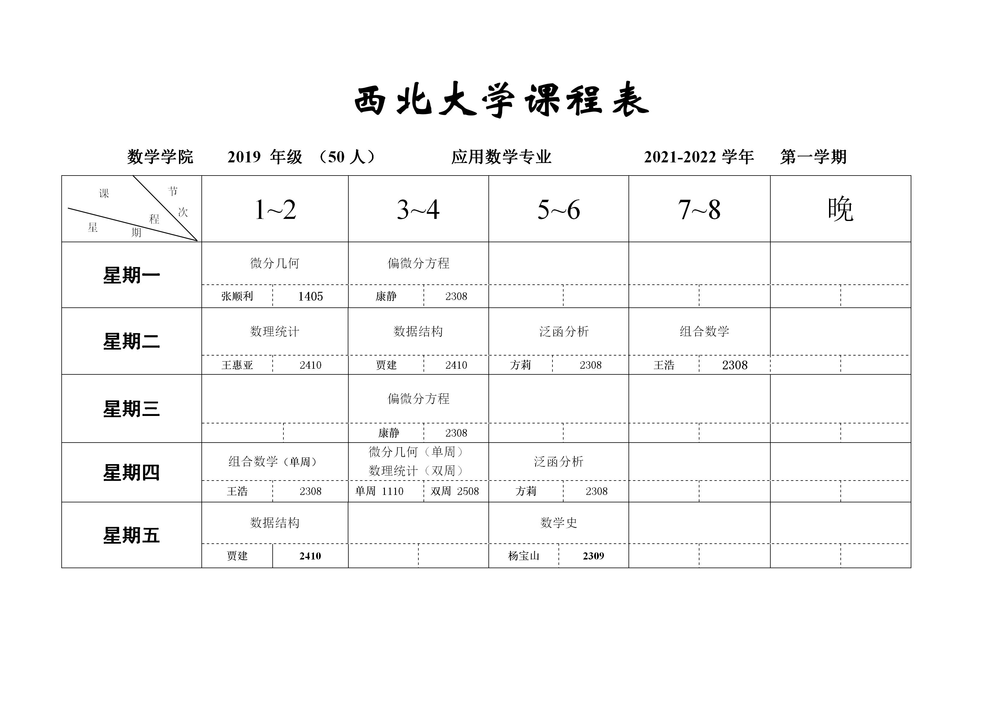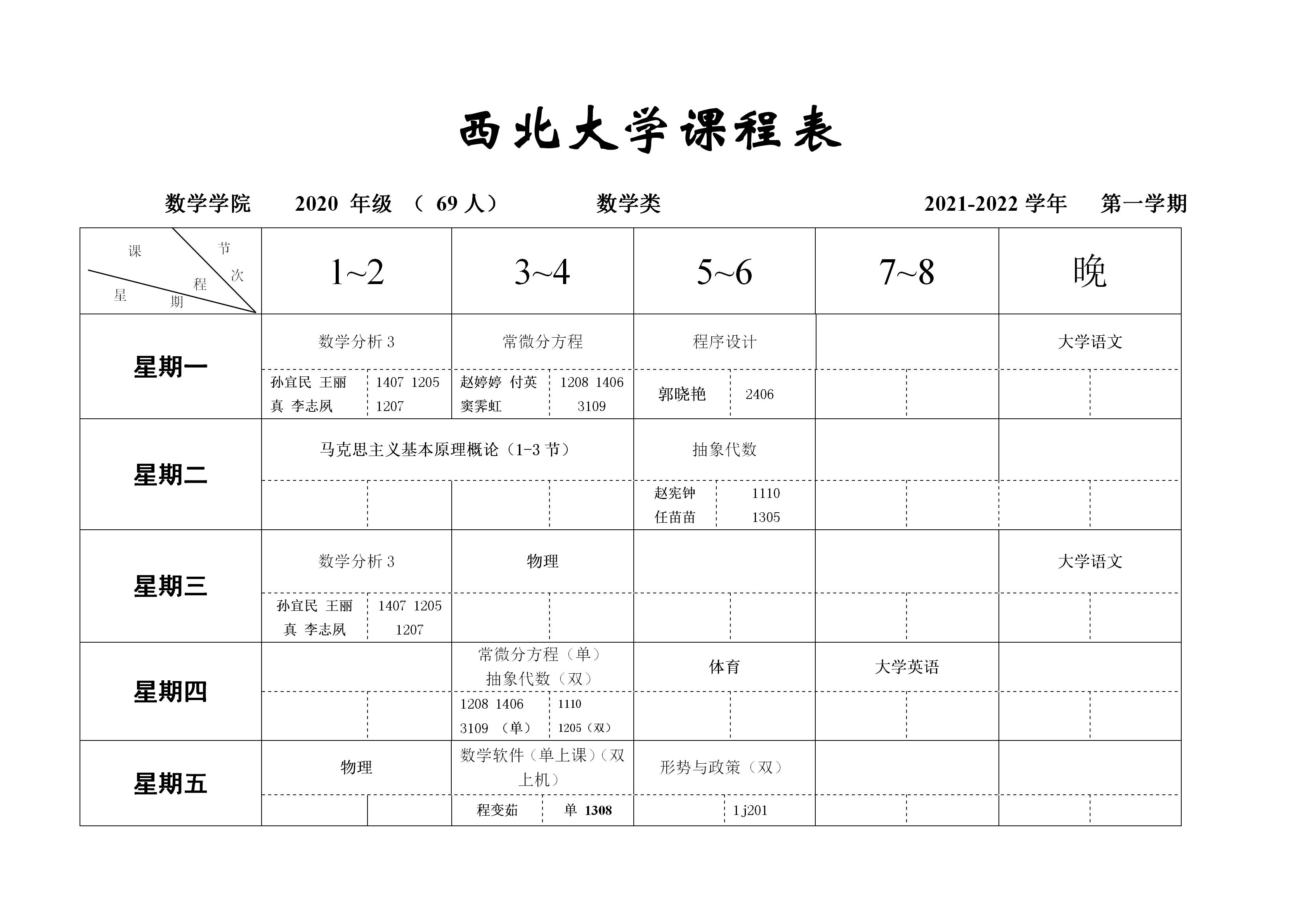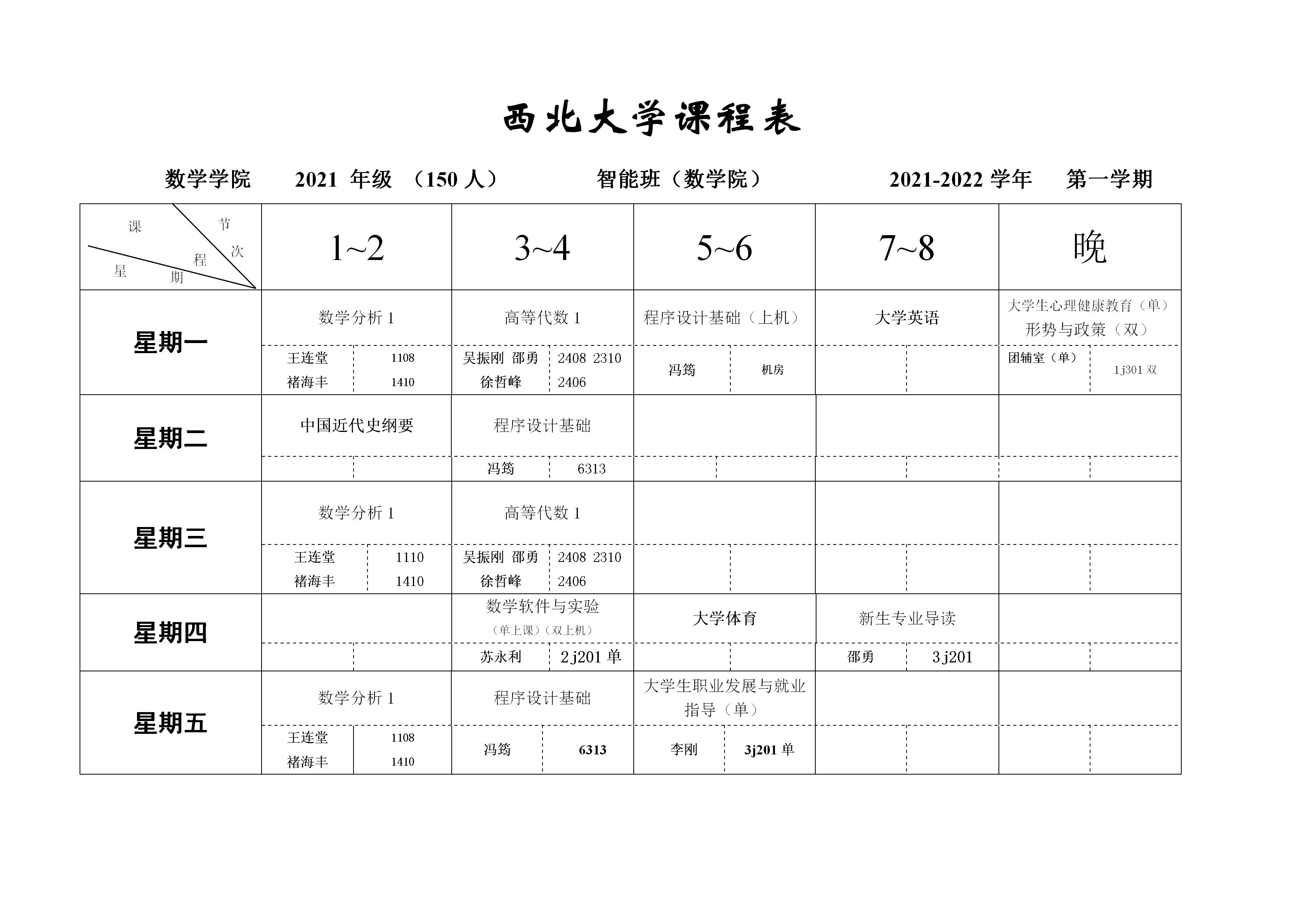 yl88858cc永利官网2021-2022学年第1学期本科生课表
