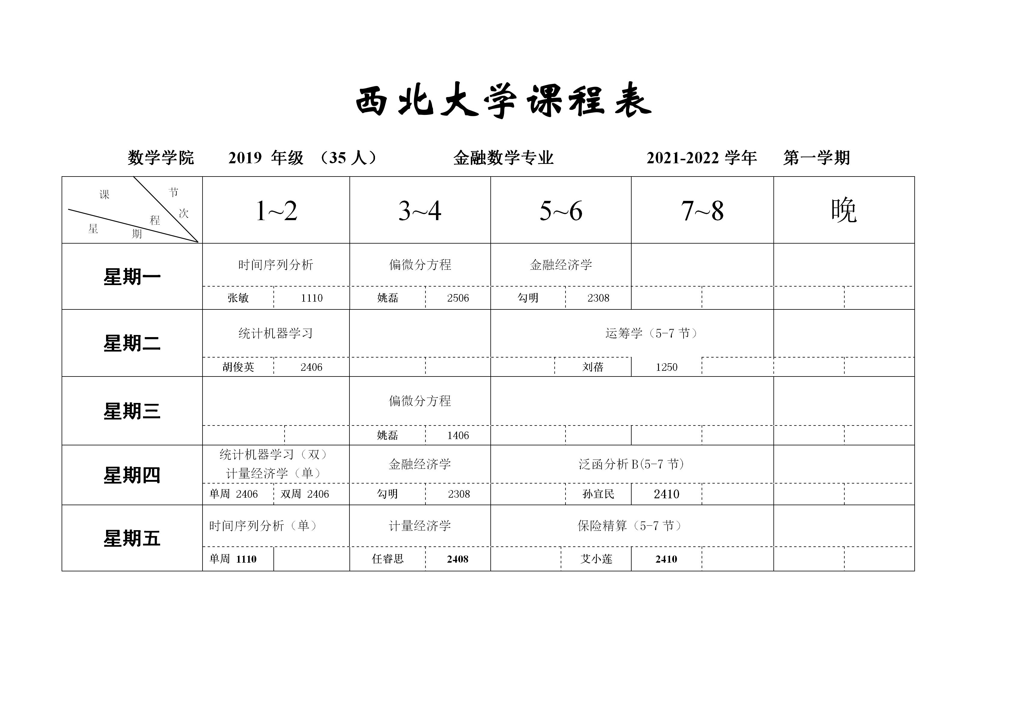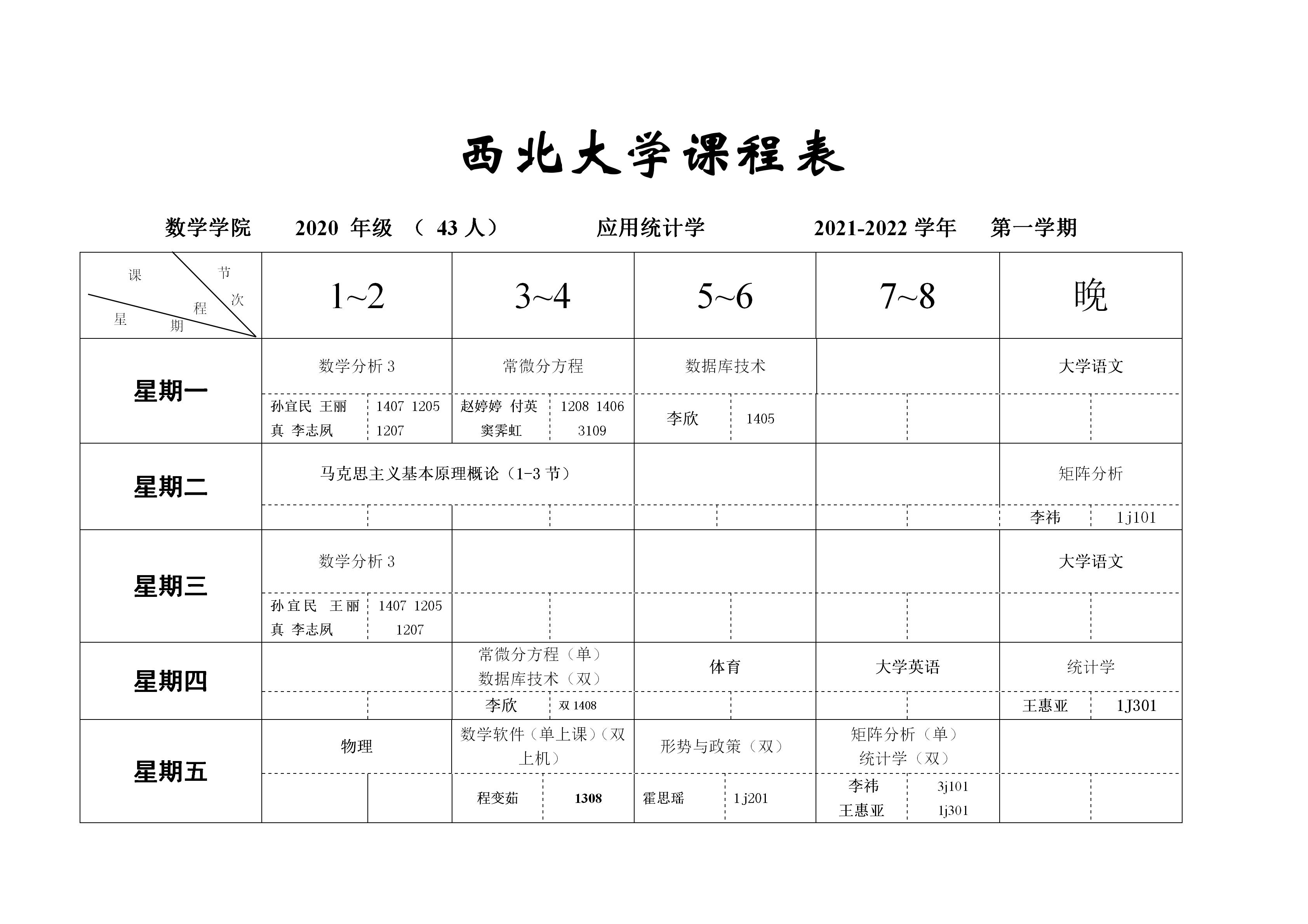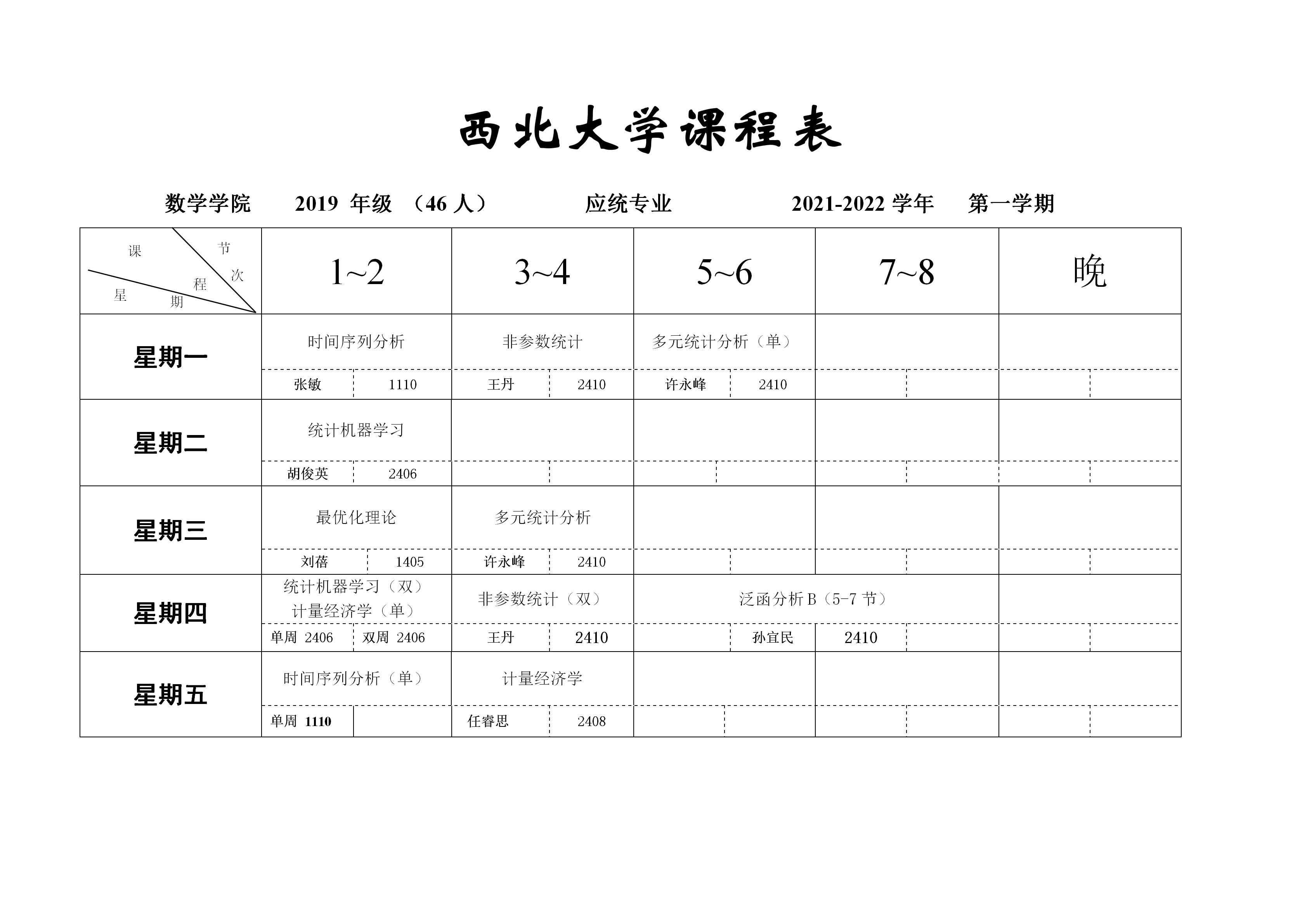 yl88858cc永利官网2021-2022学年第1学期本科生课表