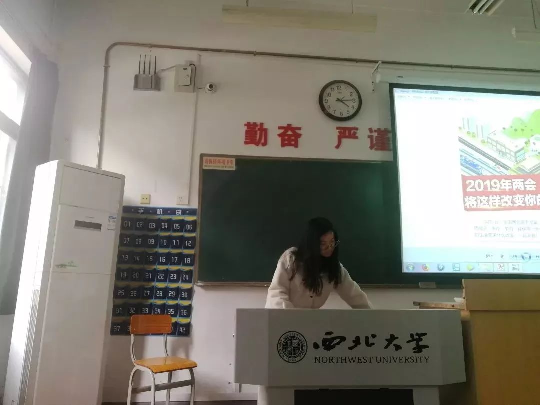 冯雨同学还向同学们分享了自己的学习感想。她说:“中国的兴旺发达关键在党,民族的全面振兴关键在我们青年一代。它要求我们当代大学生努力学习,刻苦钻研,提升自我修养与能力,把思想和行动统一到两会精神上来,更要求我们了解国情,进而立足国情,立足自身现实,规划自身发展,作出业绩,在祖国建设的道路上贡献自己全部的气力。我相信,在以习近平同志为核心的党中央领导下,一定会把握重要的历史机遇,继承和发扬优良传统,中国必定能赢得宝贵的发展时间,全面建成小康社会宏伟蓝图必将变为现实。”
