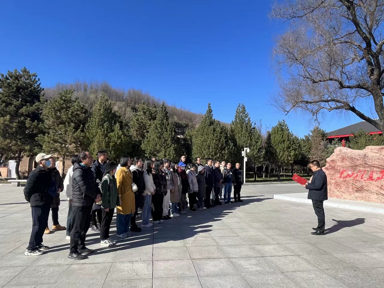 在马栏革命纪念馆前,图书馆党支部书记刘小光带领师生党员重温入党誓词。全体党员肃立,面向中国共产党党旗,大家庄严地举起右手,重温入党誓词,铮铮誓言,铿锵有力,铭记于心,牢记于行。