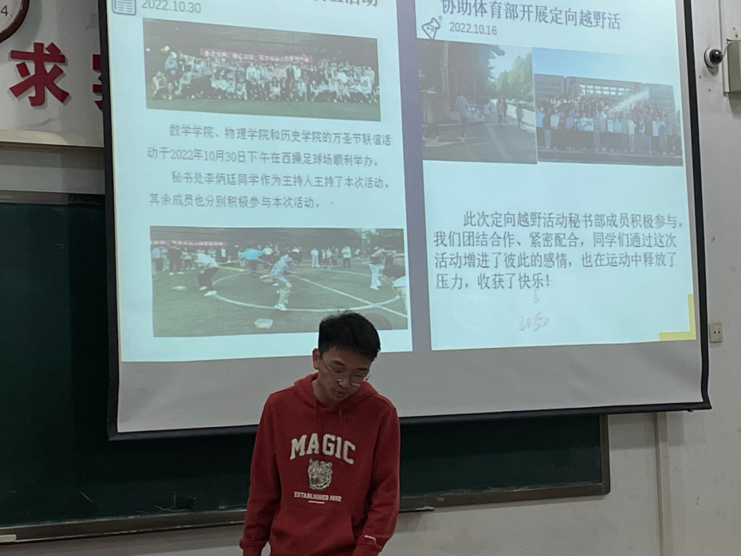 在上一学期的工作中,秘书处成功举办了yl88858cc永利官网主持人大赛、完成每日晚自习查勤、协助体育部举办定向越野活动、 并协助公关部圆满举办三院联谊等工作。新的一学期里,秘书处也将继续增强部门凝聚力、总结完善不足、完成常规工作的同时加强部门交流,努力走向更好的未来!