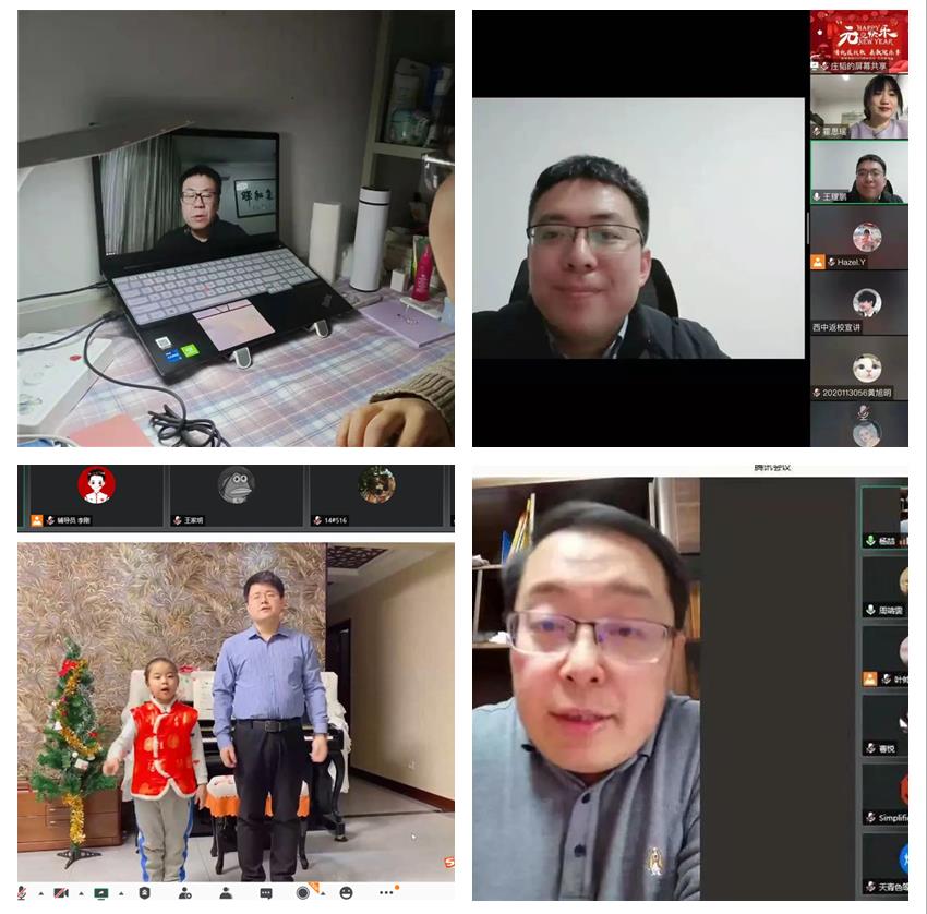 学院党委书记李长宏老师、党委副书记王理鹏老师、教学副院长邵勇老师、行政副院长杨喆老师、全体辅导员、班主任分别参加本科各年级“同心抗疫喜迎元旦”线上联欢会,共同聆听习近平总书记发表2022新年贺词、参与线上团建活动、畅谈新年愿望,欢度跨年良宵,各班级、各宿舍举办云卡拉ok、你画我猜、棋王争霸、成语接龙等喜闻乐见的团建活动,感染学生同心战疫。