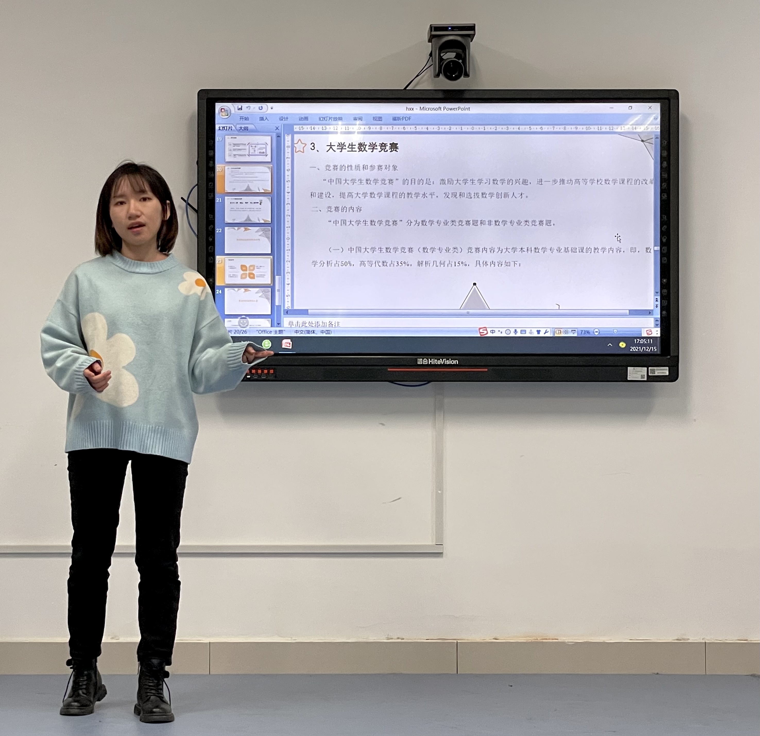 2018级数学与应用数学专业本科生胡香茜同学,曾先后参加多次数学建模校赛、国赛、美赛、大学生数学竞赛,并主持了一项国创,参与了一项省创。她分别从保研加分、考研复试、工作面试、结交好友、熟络老师、提高软实力等六个方面科创竞赛的优点出发,勉励大家要多多参加科创竞赛。最后她结合自己参加竞赛的经历,告诫大家参赛过程中应注意保持良好的心态。