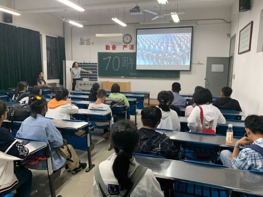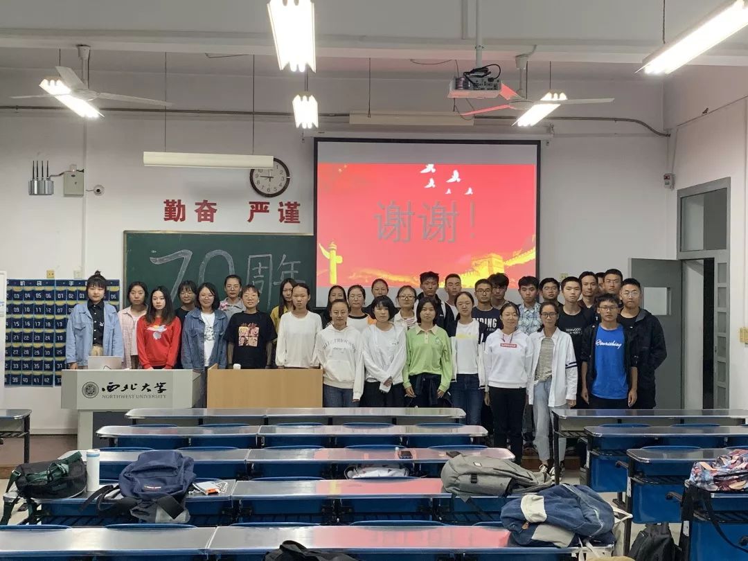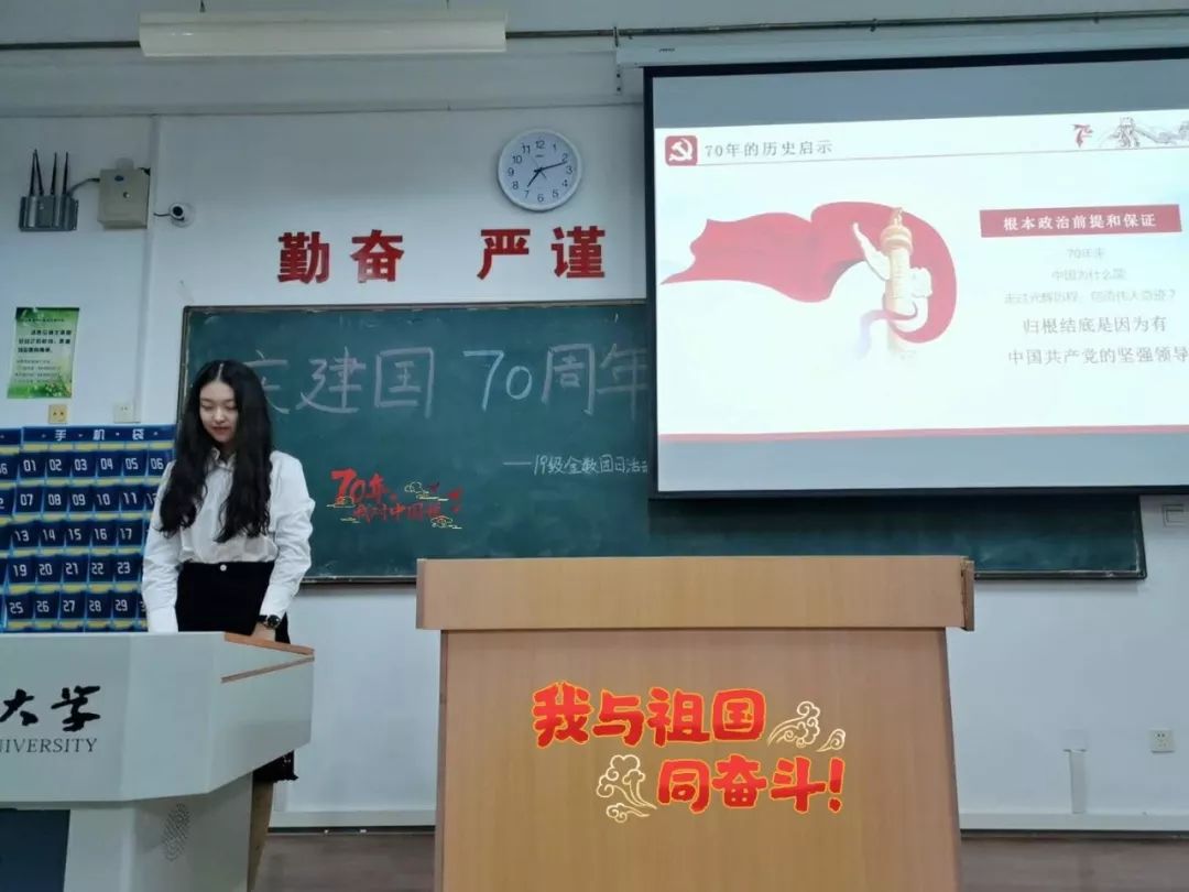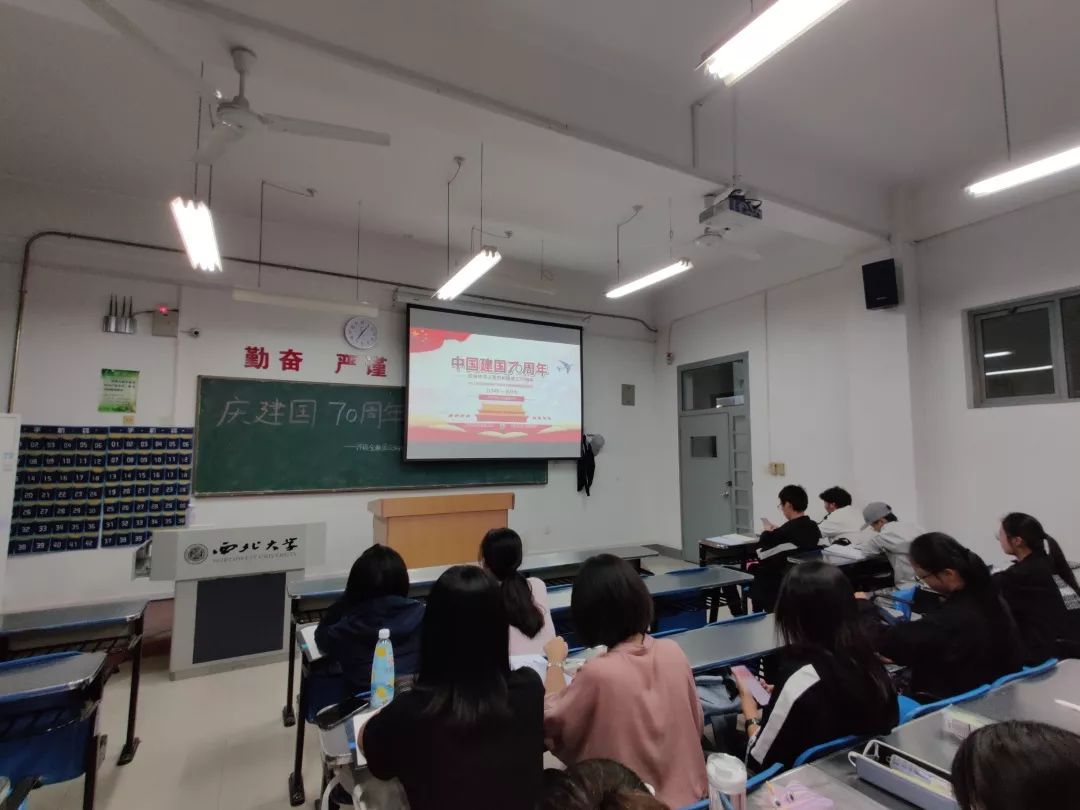 全班共同观看视频、积极展开讨论,探讨祖国建国七十年大事记,回顾历史、展望未来,使每位青年对国家的进步与发展有了更深的了解,增强大家的爱国意识。最后我们共同起立,祝福祖国生日快乐。