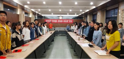 代表崔竞毅同学发言:广大青年是国家最有具有活力的群体,随着时间的推移,青年们对社会的影响将越来越广泛,越来越深刻,我们必须明白,作为当代大学生,尤其是身为学生干部,我们肩负着历史的责任与使命,我们是国家的未来、民族的希望。