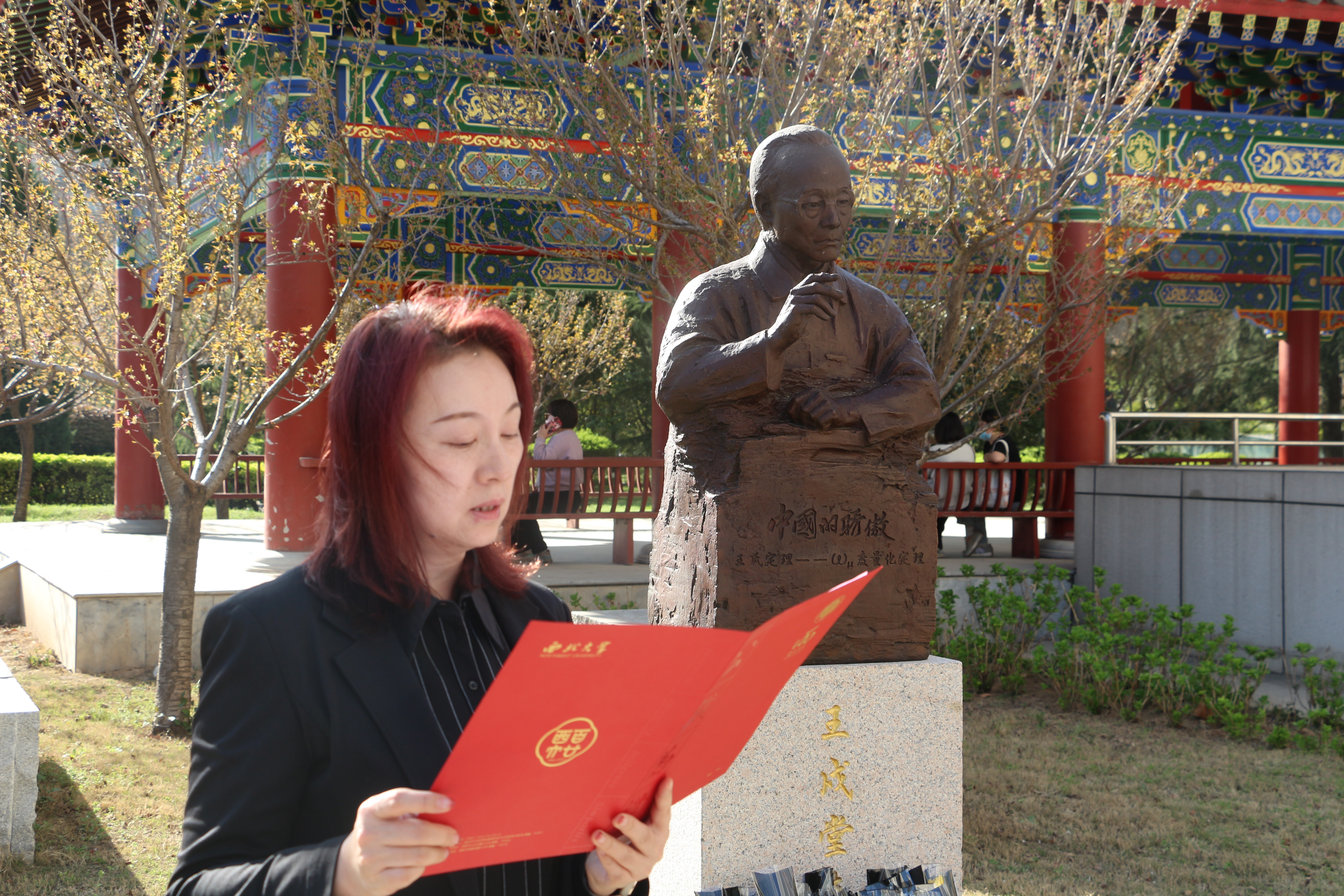 接着全体参与师生移步到王戍堂先生雕像前,共同缅怀王戍堂先生。在场师生为王戍堂先生默哀三分钟,三致深躬后依次向王戍堂先生雕像献花,以表达对先生的深切思念与敬意。