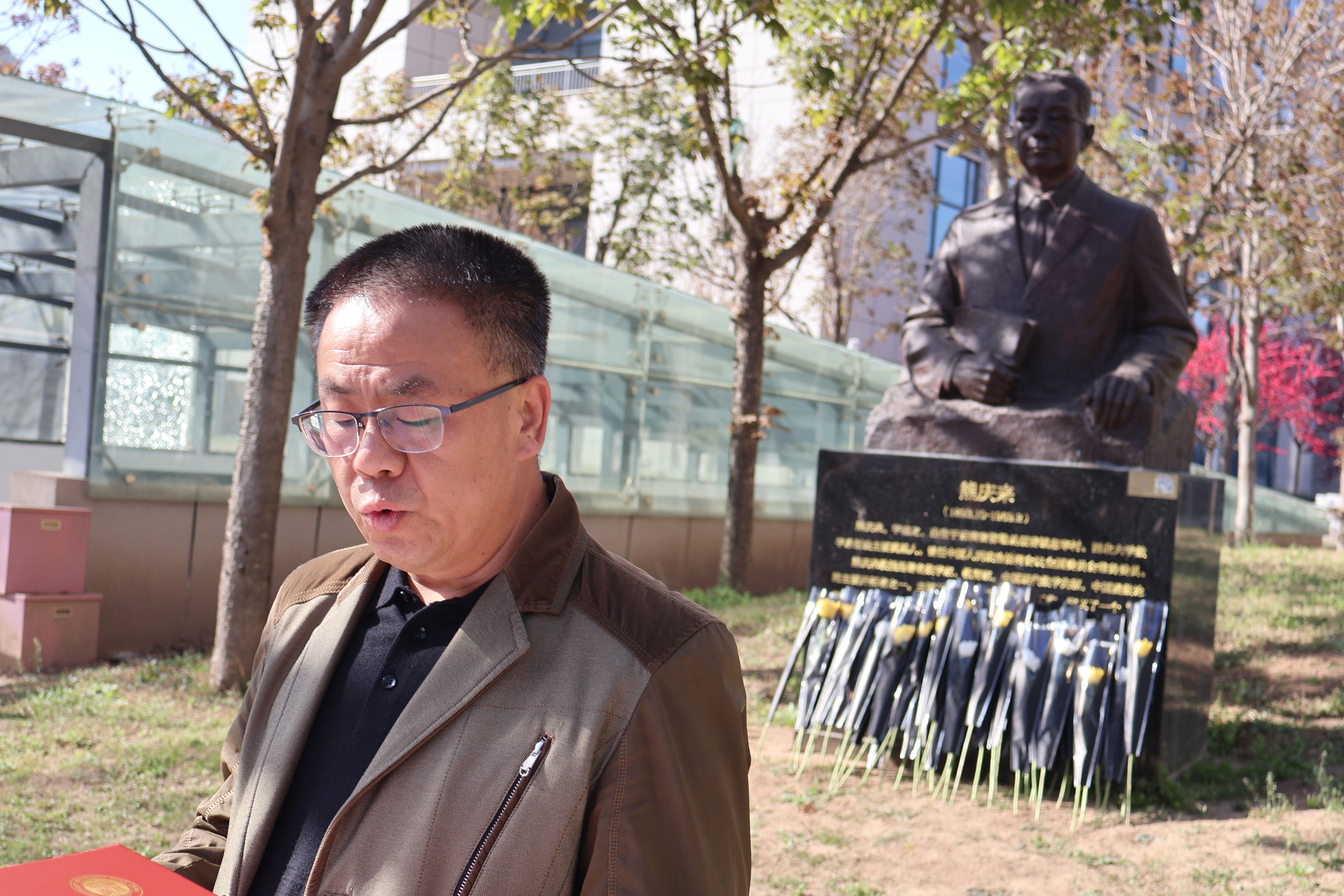 随后学生代表王彬宇同学为大家介绍了熊庆来先生作为西北大学数学学科的奠基人对中国数学事业的深切热爱与奉献经历,同时他号召大家要以熊庆来先生为榜样,始终胸怀天下、心系祖国,勇于面对困难和挑战,不断追求进步和创新,承先生之志追求卓越,继往开来而不忘初心。
