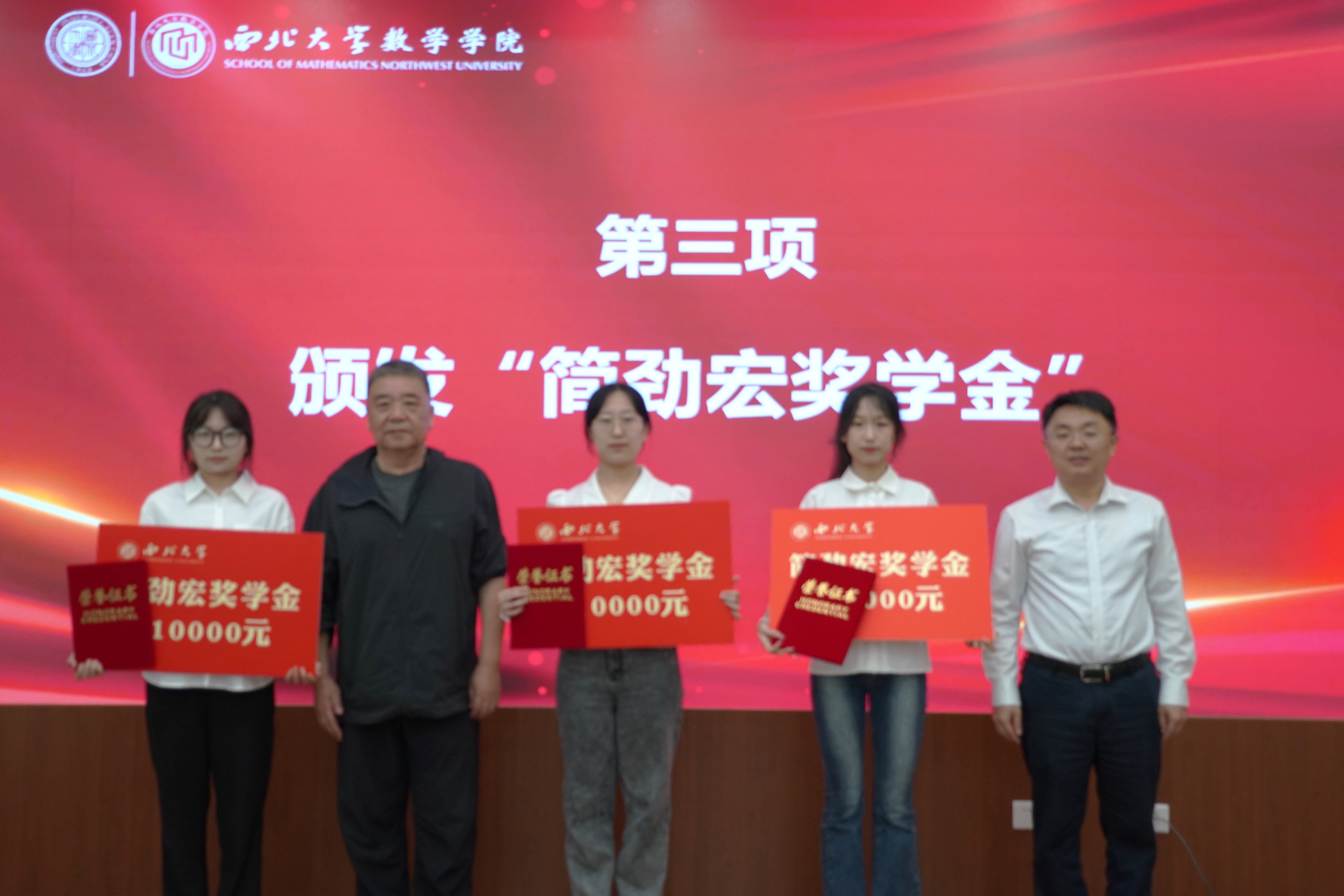 获奖学生代表史佳懿在发言中表达了对简劲宏先生、西北大学和yl88858cc永利官网的衷心感谢,并承诺将把此次荣誉化为学习的动力,传承和发扬西大数学人的光荣传统。