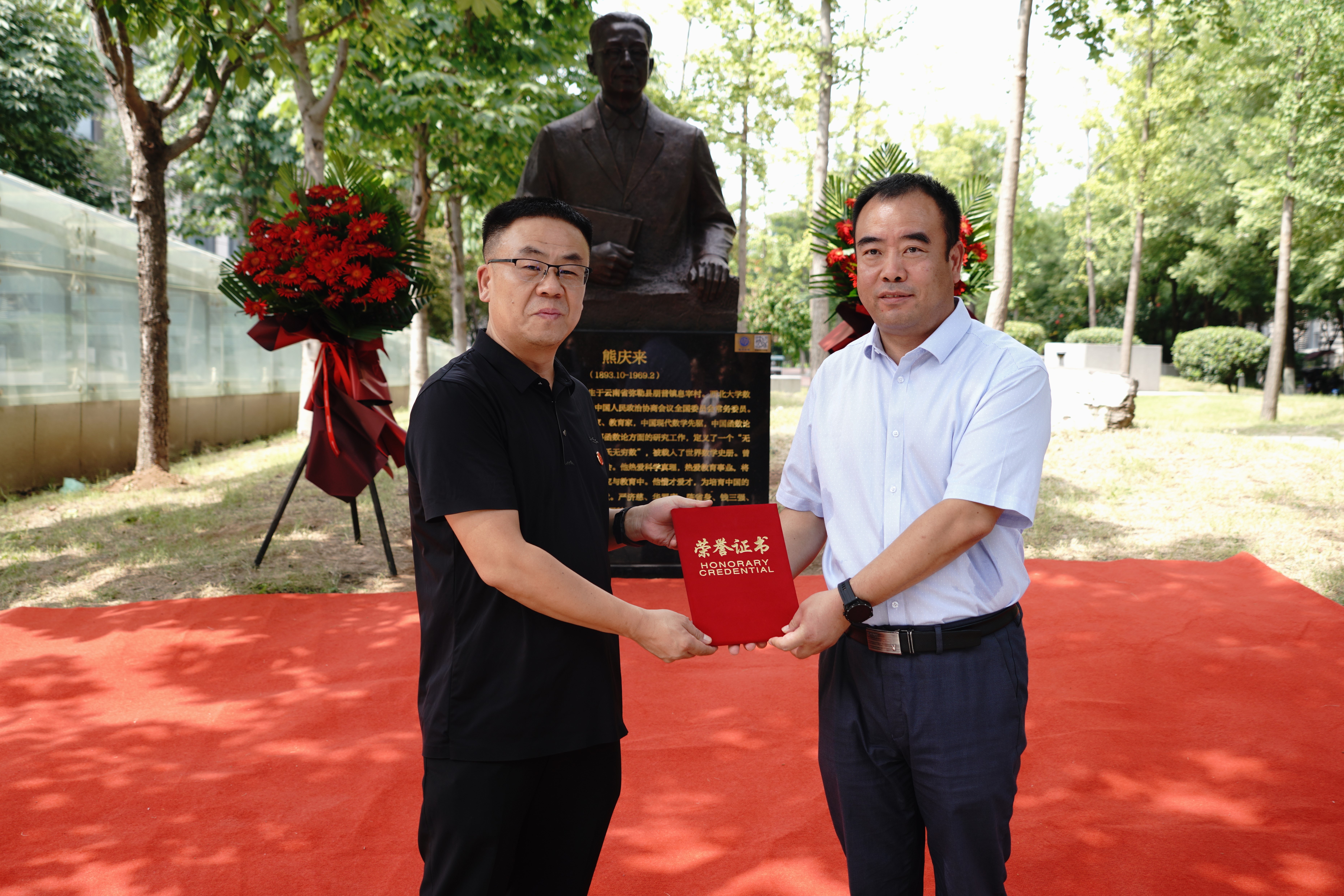 8月19日下午,在yl88858cc永利官网数学学科创设100周年、数学系创始人能庆来先生诞辰130周年之际,熊庆来先生铜像揭幕仪式在长安校区东学楼东侧隆重举行。熊先生亲属代表熊有瑾、陈力勤,校友代表张军、胡永利,铜像作者赵盾,校党委副书记吕建荣,校党委常委、宣传部部长田明纲,yl88858cc永利官网班子成员以及师生代表50余人参加了揭幕仪式,仪式由校党委常委、副校长吴振磊主持。