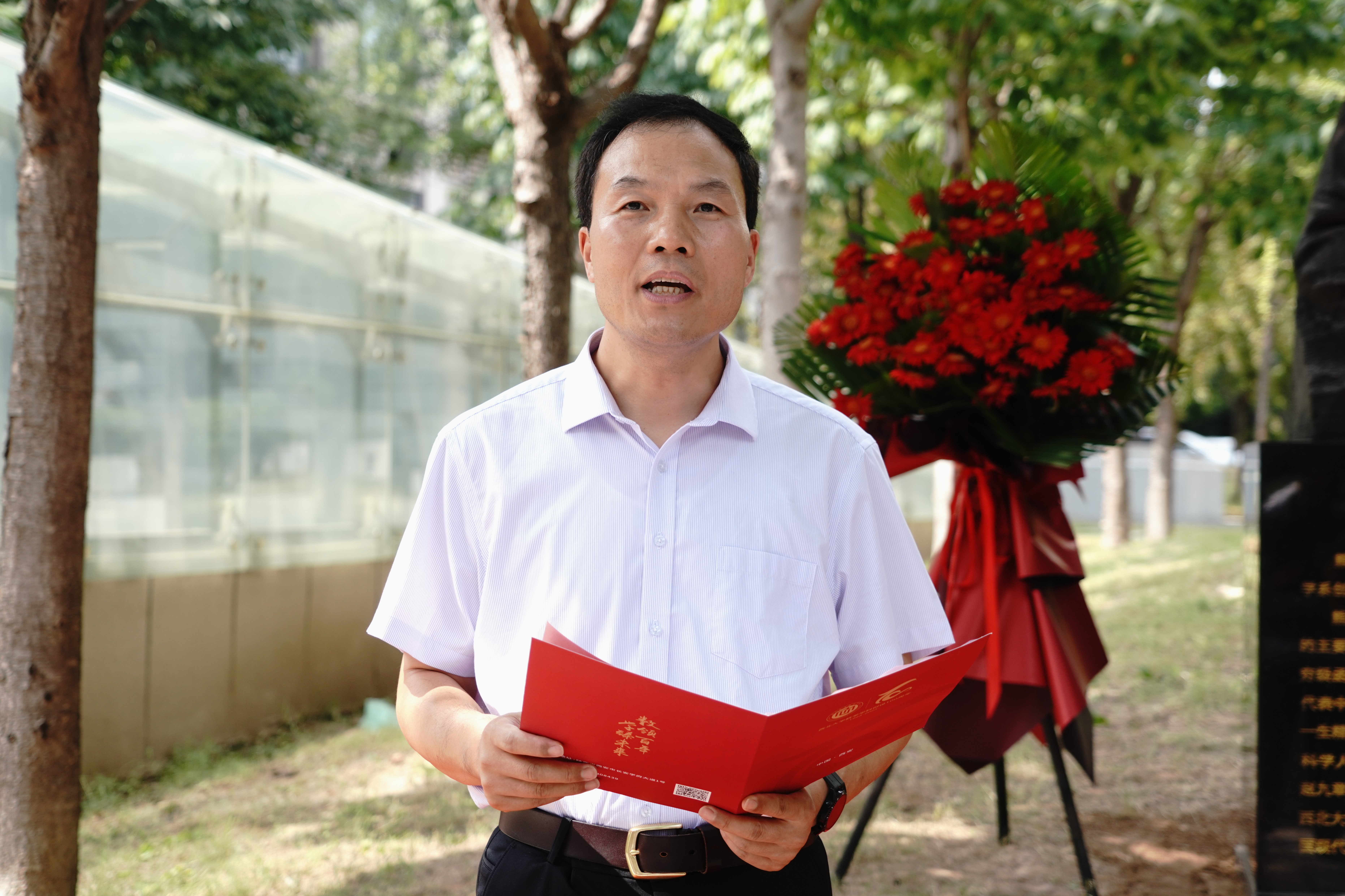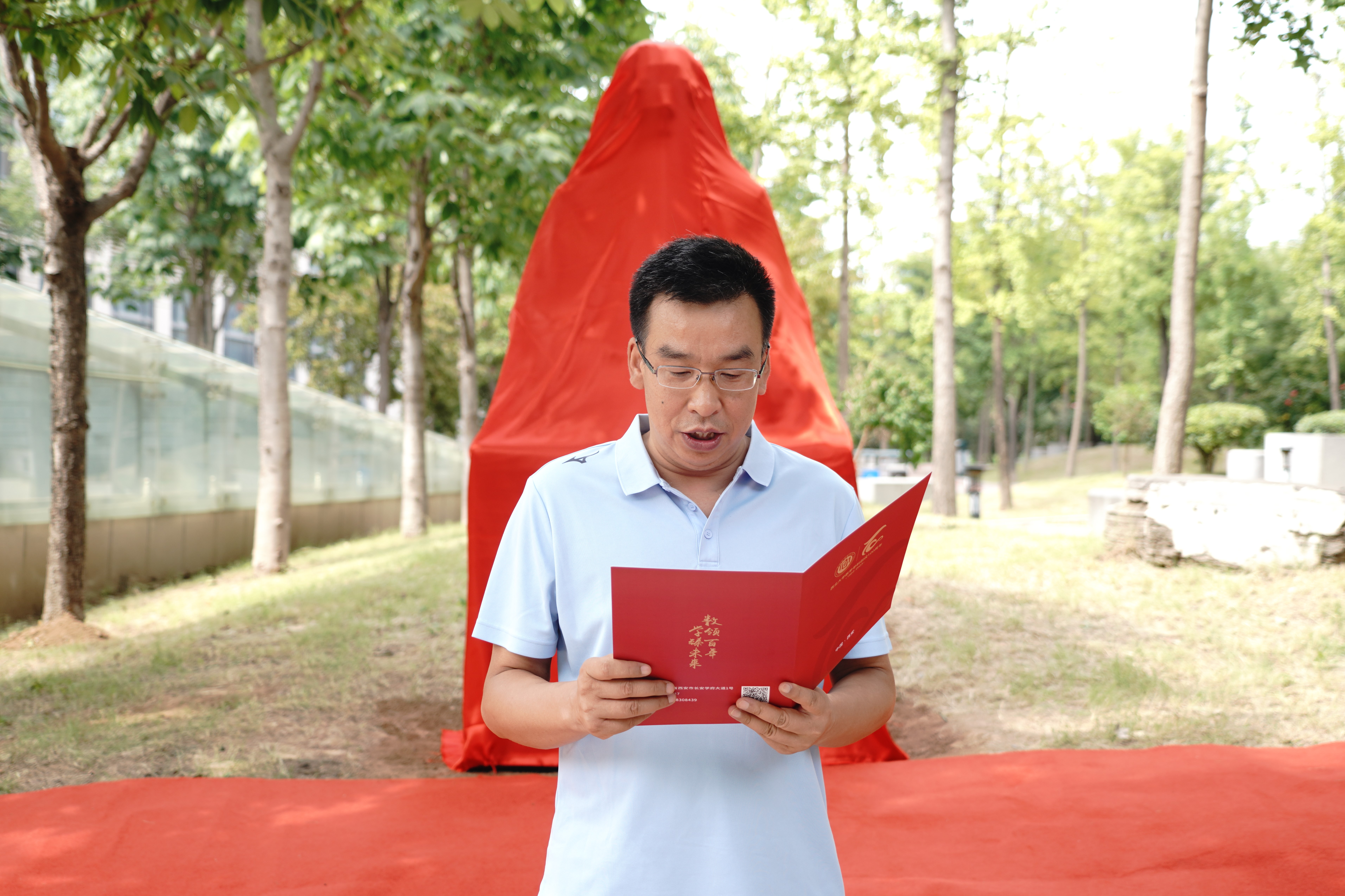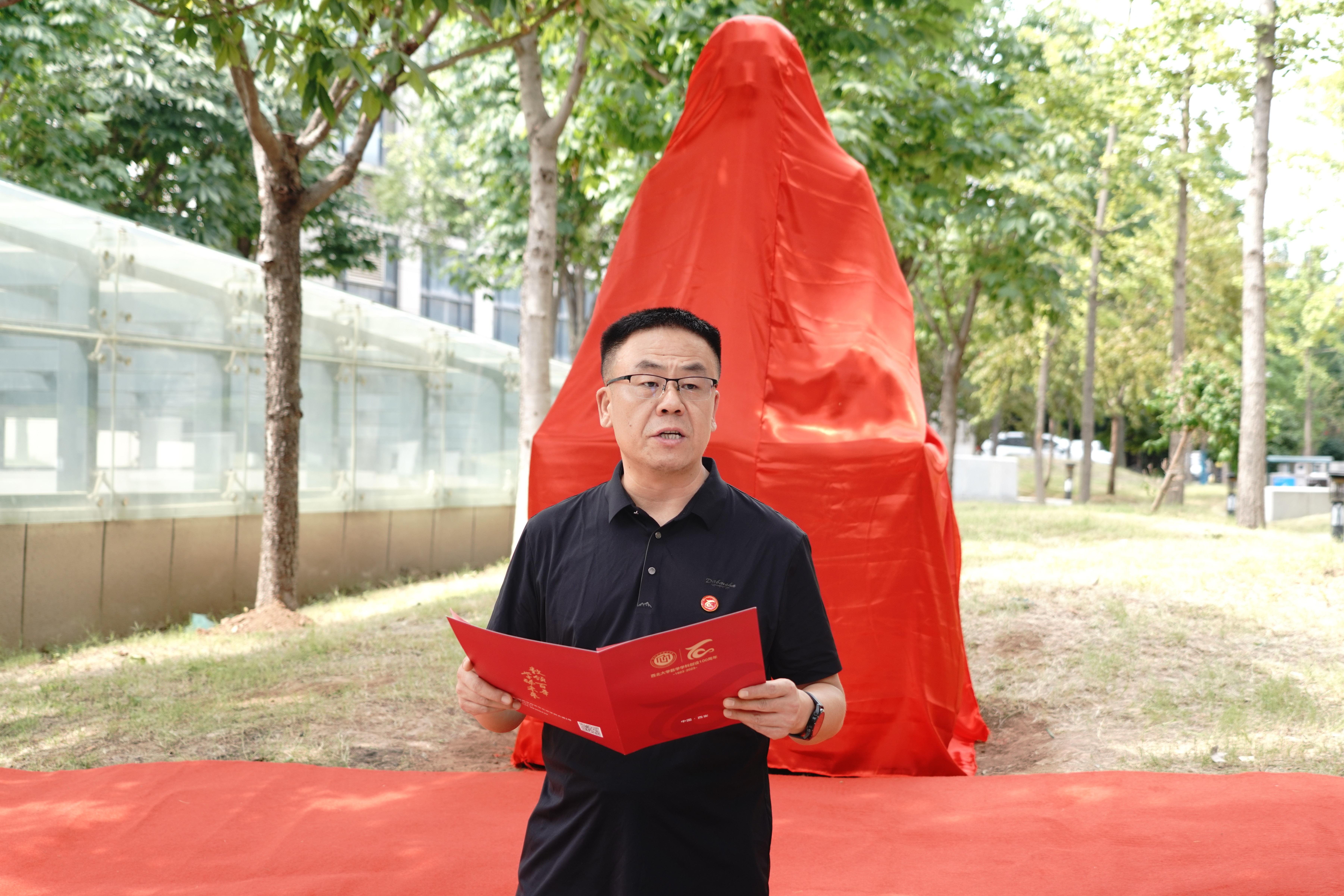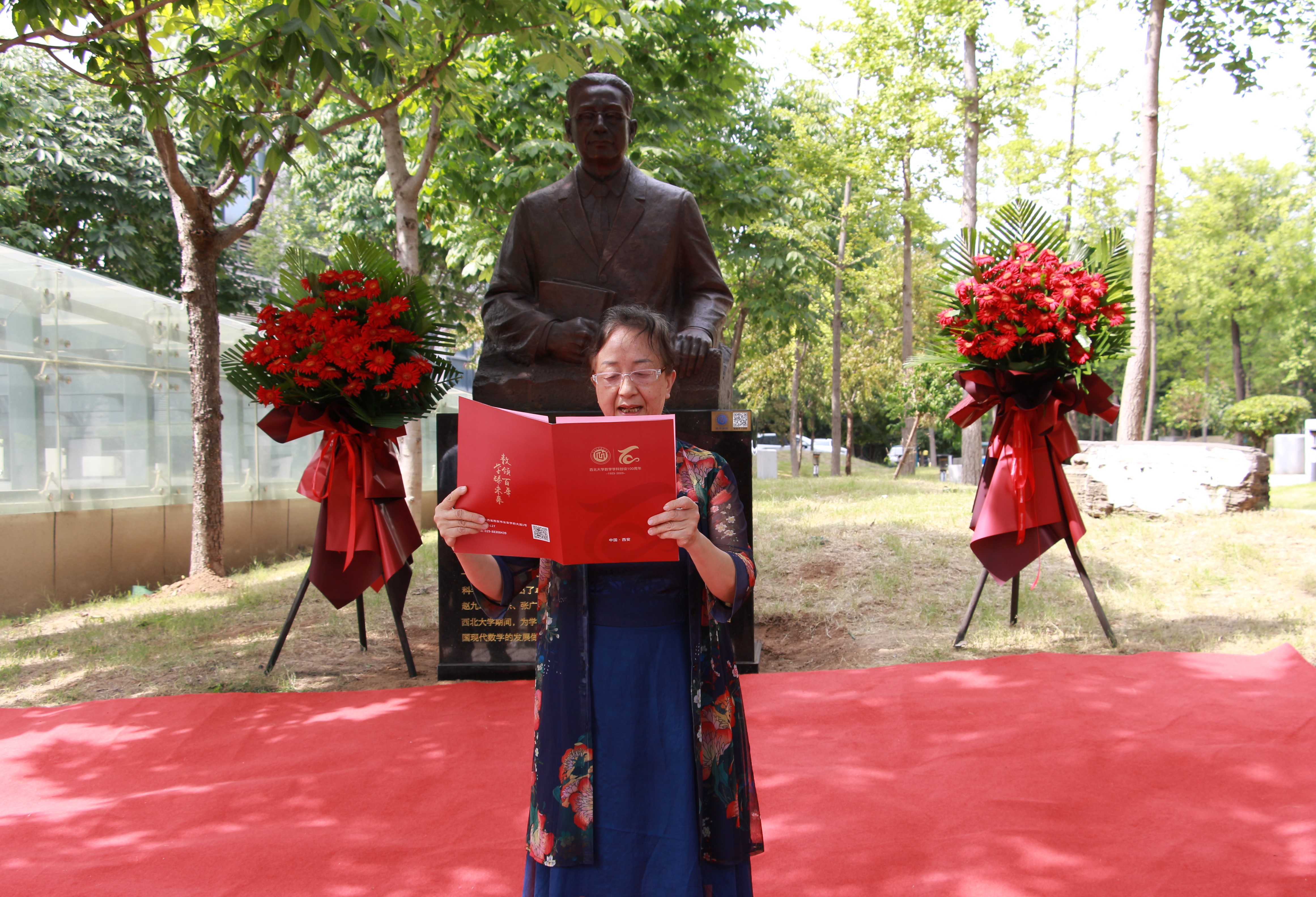 校党委常委、宣传部部长田明纲宣读了熊庆来先生铜像铭文,介绍了熊先生光荣伟大的一生。熊先生是著名数学家、教育家,中国现代数学先驱,中国函数论的主要开拓者之一。熊先生在数学领域深耕,以“熊氏无穷级”理论载入世界数学史册,为无穷级整函数、亚纯函数、代数体函数等问题的解决提供了新的视角;熊先生从云南走出,不畏艰辛,历经多次海外求学和国内工作调动,为中国数学事业默默奉献;熊先生是西大数学学科的重要奠基者,为推动中国现代数学的发展做出了突出贡献。