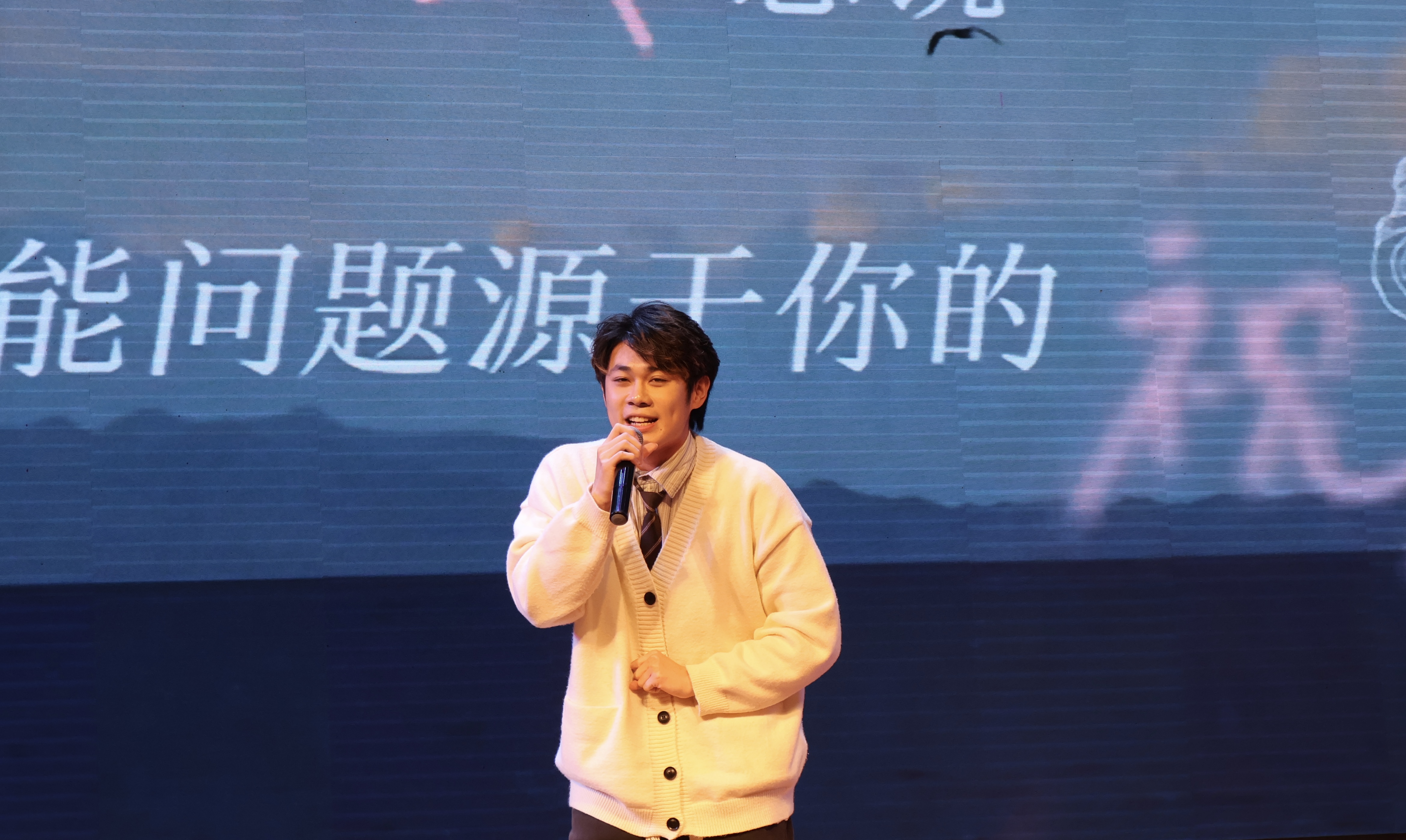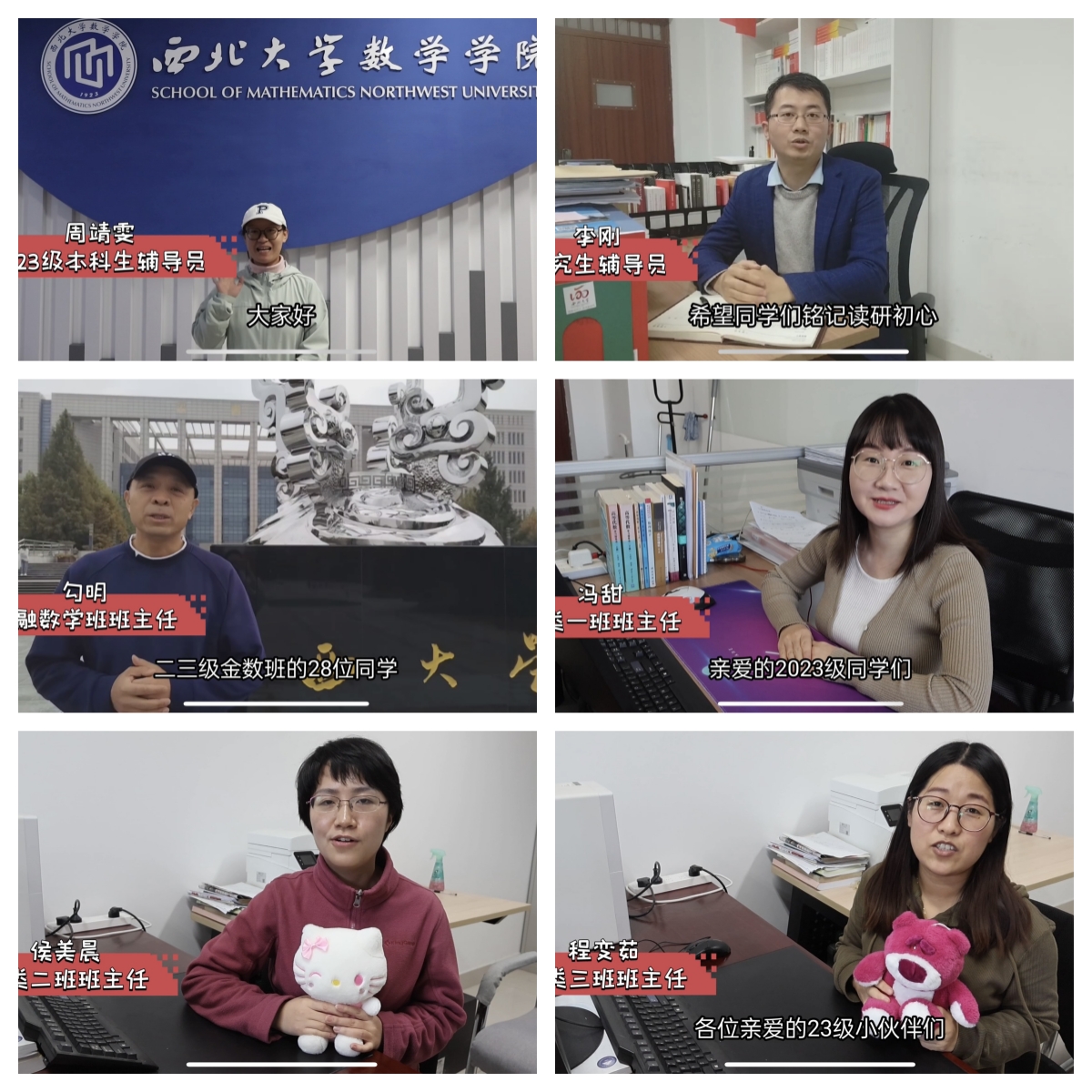 主持人热情洋溢的开场白后,在欢快的音乐声中,学院老师和老生代表以视频方式为2023级新生们献上了最真挚的祝福。