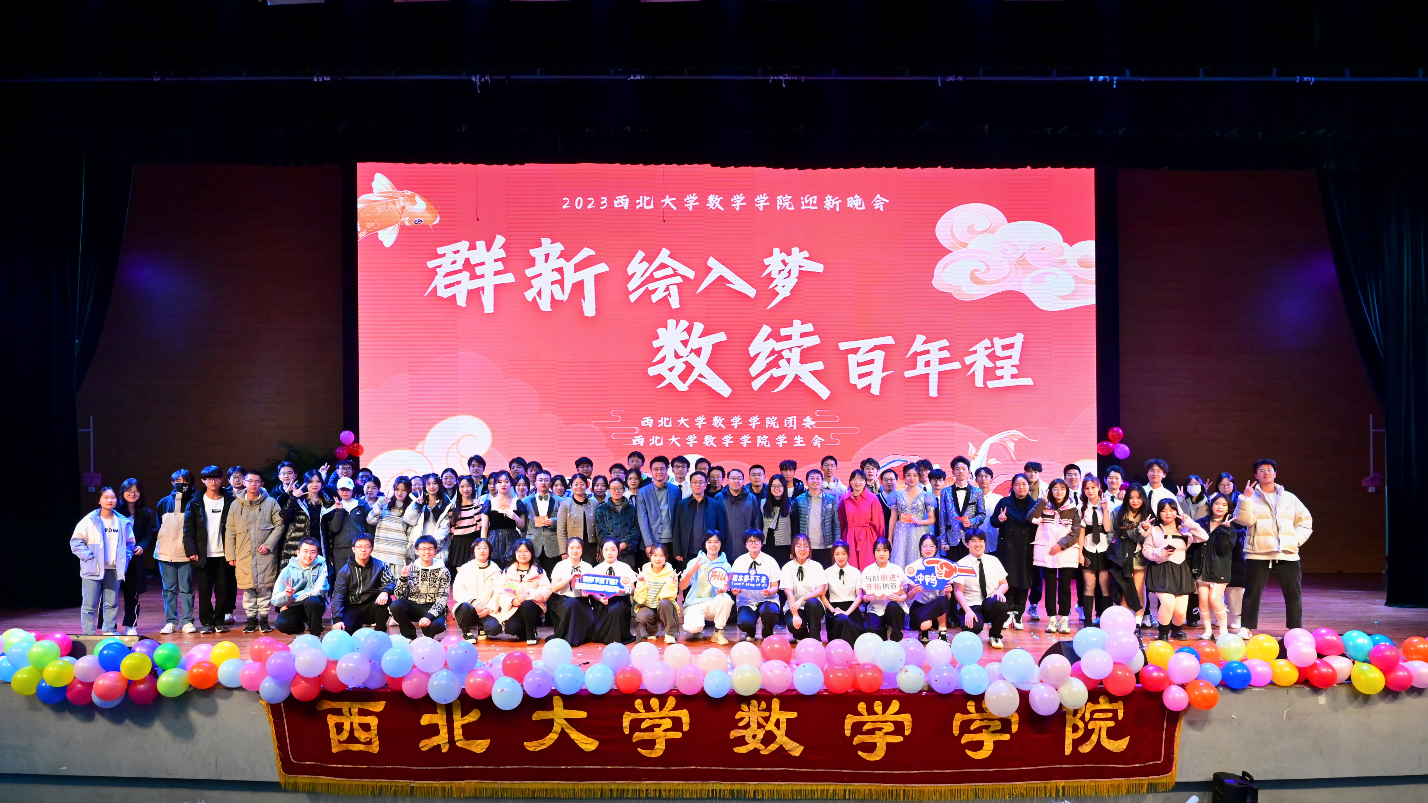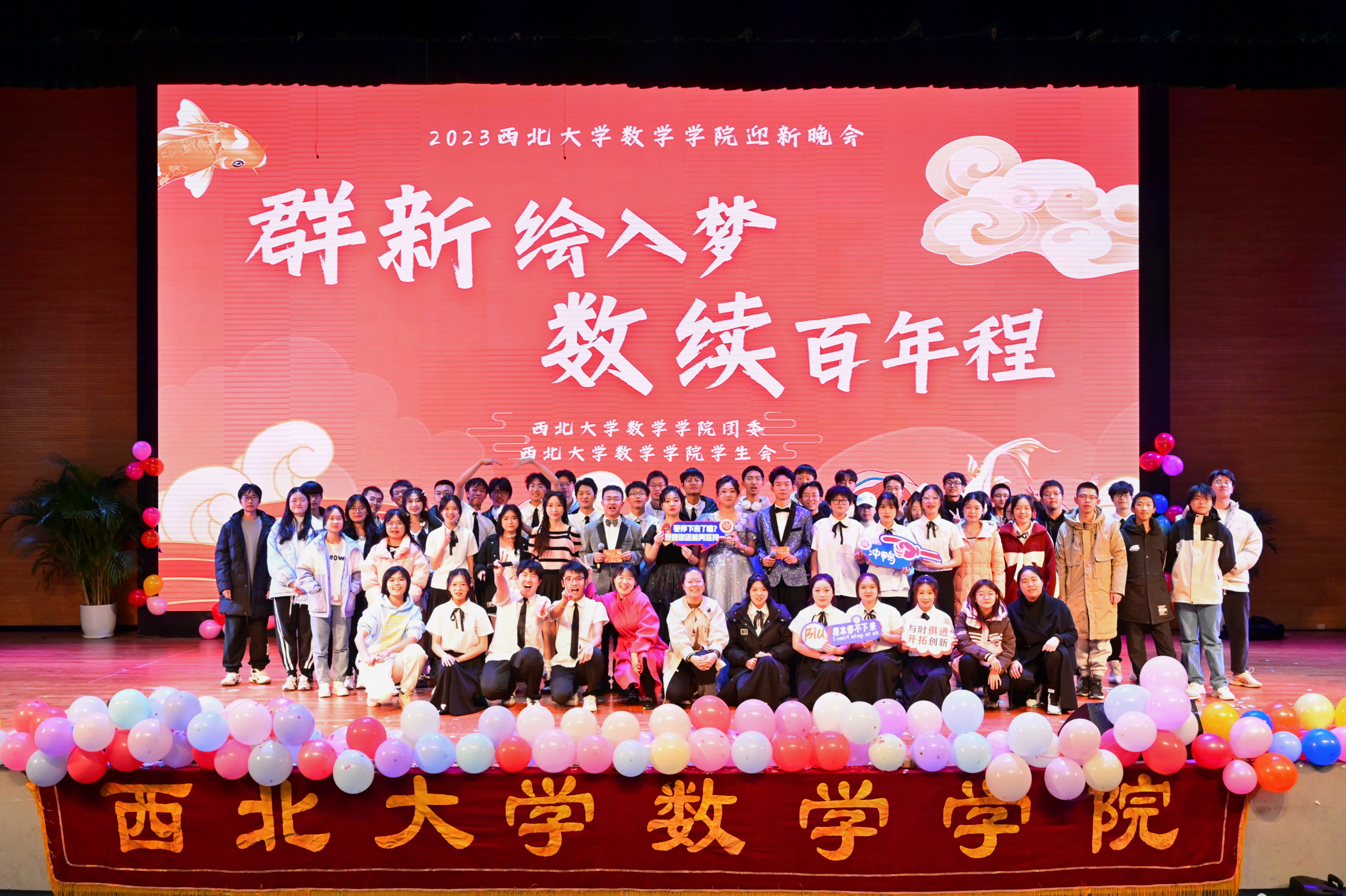 晚会最后,领导嘉宾与全体演职人员合影留念,yl88858cc永利官网2023年“群‘新’绘入梦,数续百年程”迎新晚会圆满落下帷幕。