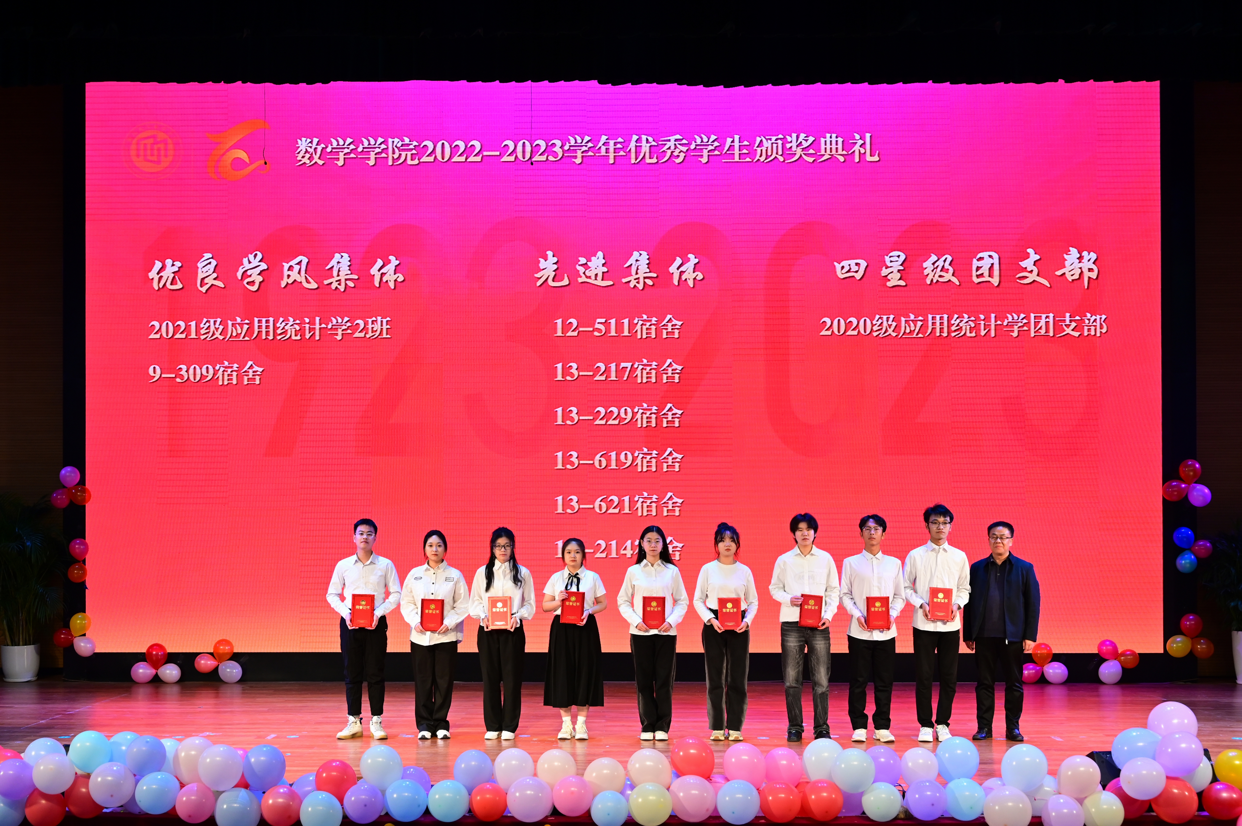 在催人奋进的音乐声中,学院领导为获奖个人和集体代表颁发奖状并合影留念。